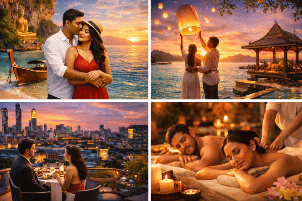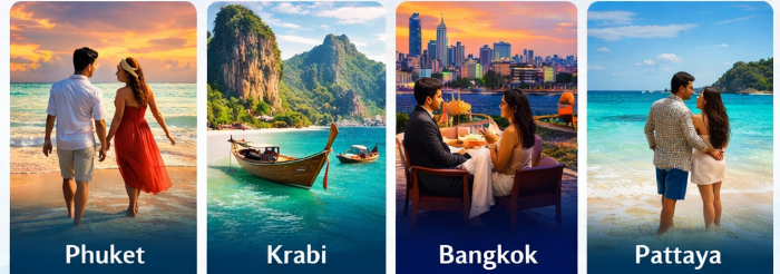 Thailand honeymoon packages from India offer affordable luxury experiences that blend romantic settings with value-for-money benefits. Popular packages start from around ₹30,000–₹70,000 for 3–7 nights per person, including comfortable hotel stays, airport transfers, sightseeing, and beach tours in honeymoon hotspots like Phuket, Krabi, Pattaya, and Bangkok.