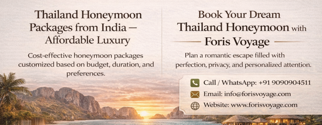 At Foris Voyage, we curate thoughtfully designed Thailand honeymoon tour packages that balance romance, relaxation, and exploration, ensuring couples experience Thailand in the most intimate and memorable way possible.