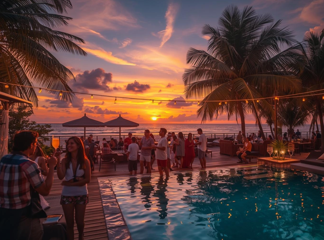 As the sun dips below the horizon, soak in the magical Bali sunset at Tropical Temptation Beach Club, where live DJ beats, soft golden light, and ocean breeze set the perfect evening vibe.