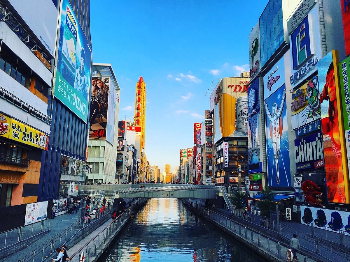 The iconic bridge in the Dotonbori district, famous for its vibrant neon signs and as the perfect spot to view the Glico Running Man sign and bustling canal.