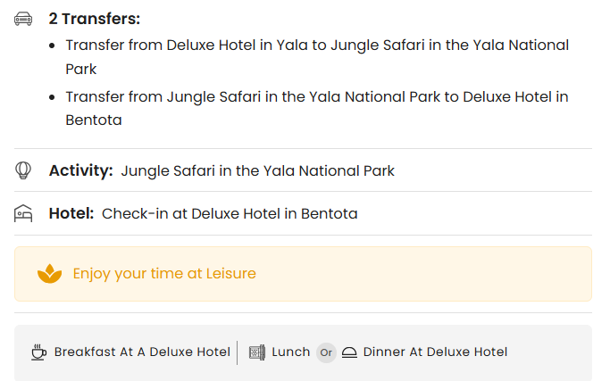 After check-out, set out on an exhilarating jungle safari in Yala National Park, where you may spot leopards, elephants, and a variety of wildlife in their natural surroundings.