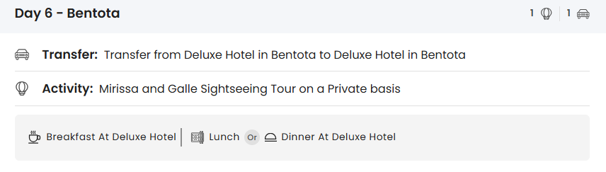 Following the safari, continue your journey to Bentota and check in to your hotel. The rest of the day is free at leisure—take a stroll through the enchanting Brief Gardens or visit the historic Galapata Vihara, a tranquil temple famed for its ancient rock carvings. Return to your hotel for an overnight stay.
