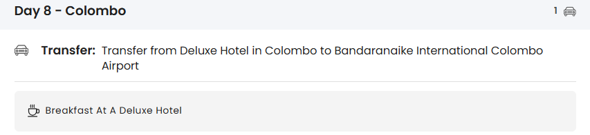 - Transfers from Bandaranaike International Colombo Airport to hotel and back
